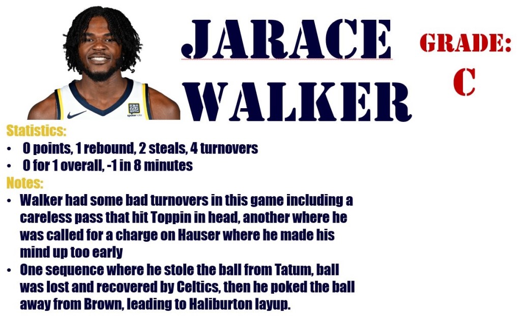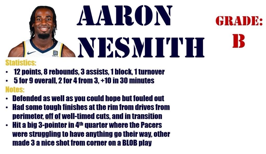 This game had zero business going to overtime as the Pacers led by 21 points with 8 minutes remaining but in classic Pacers fashion just about everything that could go wrong did go wrong in the final quarter whether it was bad turnovers, a streak of missed shots, giving up second chances, and the Celtics taking advantage of every Pacers error and of being able to play with a lot of contact on the defensive end without being called for fouls.