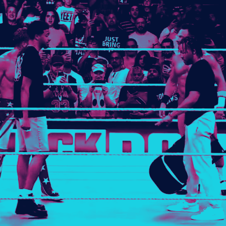Tyrese Haliburton and Jalen Brunson meet in the ring during WWE Smackdown